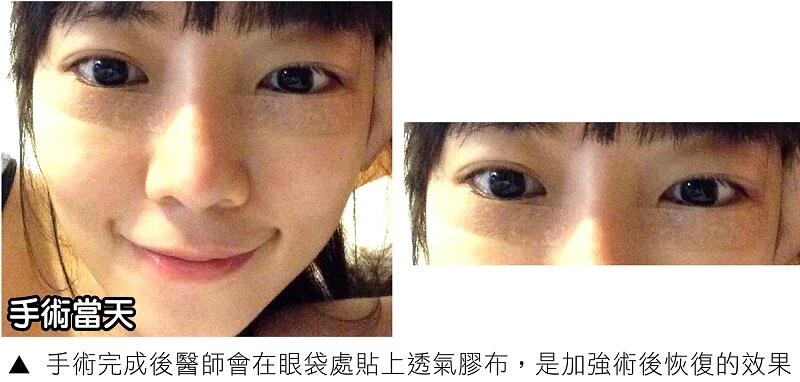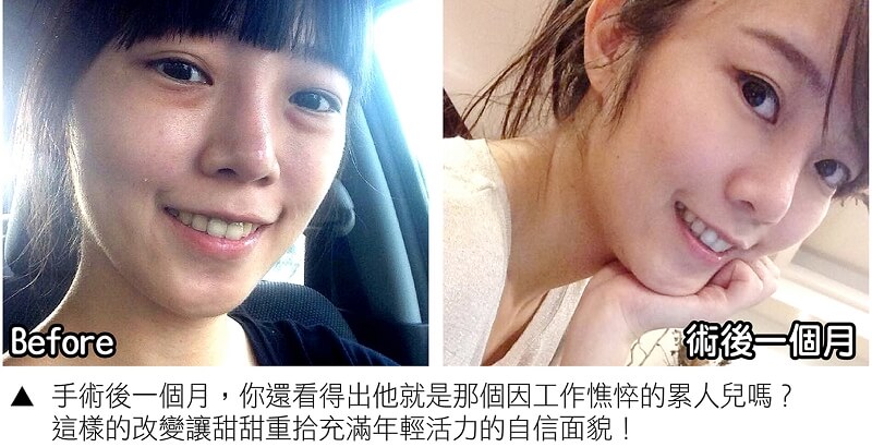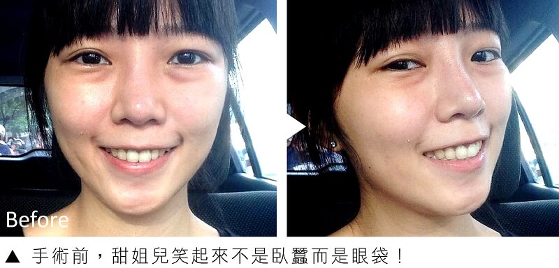 第一次接觸整形的甜甜表示,其實剛開始心情是很緊張,起初只有在網站搜集資訊、在網路上看過別人的手術過程分享,雖然很期待手術後的成果,但想到要在眼皮上動刀、還有術後的恢復期,難免有些害怕,甜甜在經過醫師詳細的諮詢說明形成眼袋的原因及手術方式,其實整形手術是不斷的精進改良,手術的傷口也愈來愈走微創的方式,便利了術後照顧及縮短恢復期,醫師要甜甜放鬆心情,整形手術不是想像中那麼可怕的。