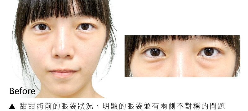 現代人經常熬夜,長時間低頭使用電腦、手機等3C產品,血管滲出液會增多進而使眼眶水腫,導致筋膜、皮膚鬆弛,加速眼袋形成,讓有眼袋困擾的年齡層有逐漸年輕的趨勢,不論長相多麼美麗,一旦出現了眼袋問題,都會讓人看起來顯老、沒精神,魅力大打折扣,甜甜就是一個被眼袋增添的年輕案例!