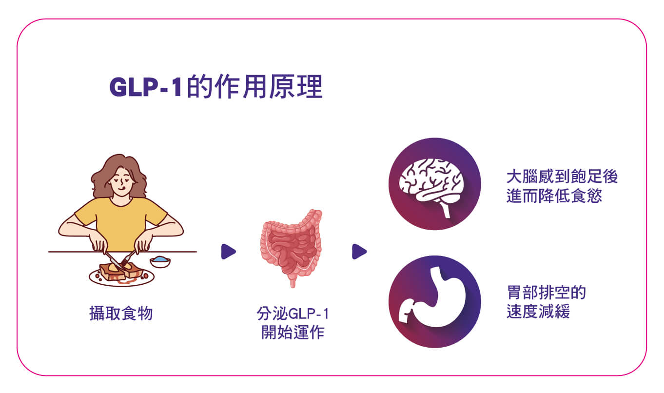 GLP-1是由人體小腸中的迴腸遠端與大腸近端的L細胞所分泌,它可刺激β-細胞分泌胰島素,及抑制α-細胞分泌升糖激素,也能減緩腸胃蠕動,達到降低血糖之作用。善纖達是一種GLP-1類似物,屬於天然荷爾蒙,會因為進食後而釋放,讓大腦感覺飽足降低調節食慾進而減少對食物的攝取,使胃部排空的速度降緩,而善纖達作用於下視丘,下視丘是調節人體能量的開關,在此處與食慾和食物攝取調節有關的特定神經元進行交互作用可,增加飽足感並降低飢餓感,進而降低食物的攝取。