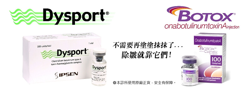 目前台灣以Dysport、Botox兩大廠牌為主,兩者皆俱有良好的藥劑效果,唯有計算用量單位不同此差異。本院只使用合格安全進口之肉毒桿菌藥劑,並採用標準用量配方施打絕不稀釋,全程安全無菌注射,提醒在進行詢比肉毒桿菌注射療程要瞭解注射物內容、與醫師的專業背景,每個人依本身條件與需求用量與維持性不同,切勿以價格比較趨向增加自身醫療風險。