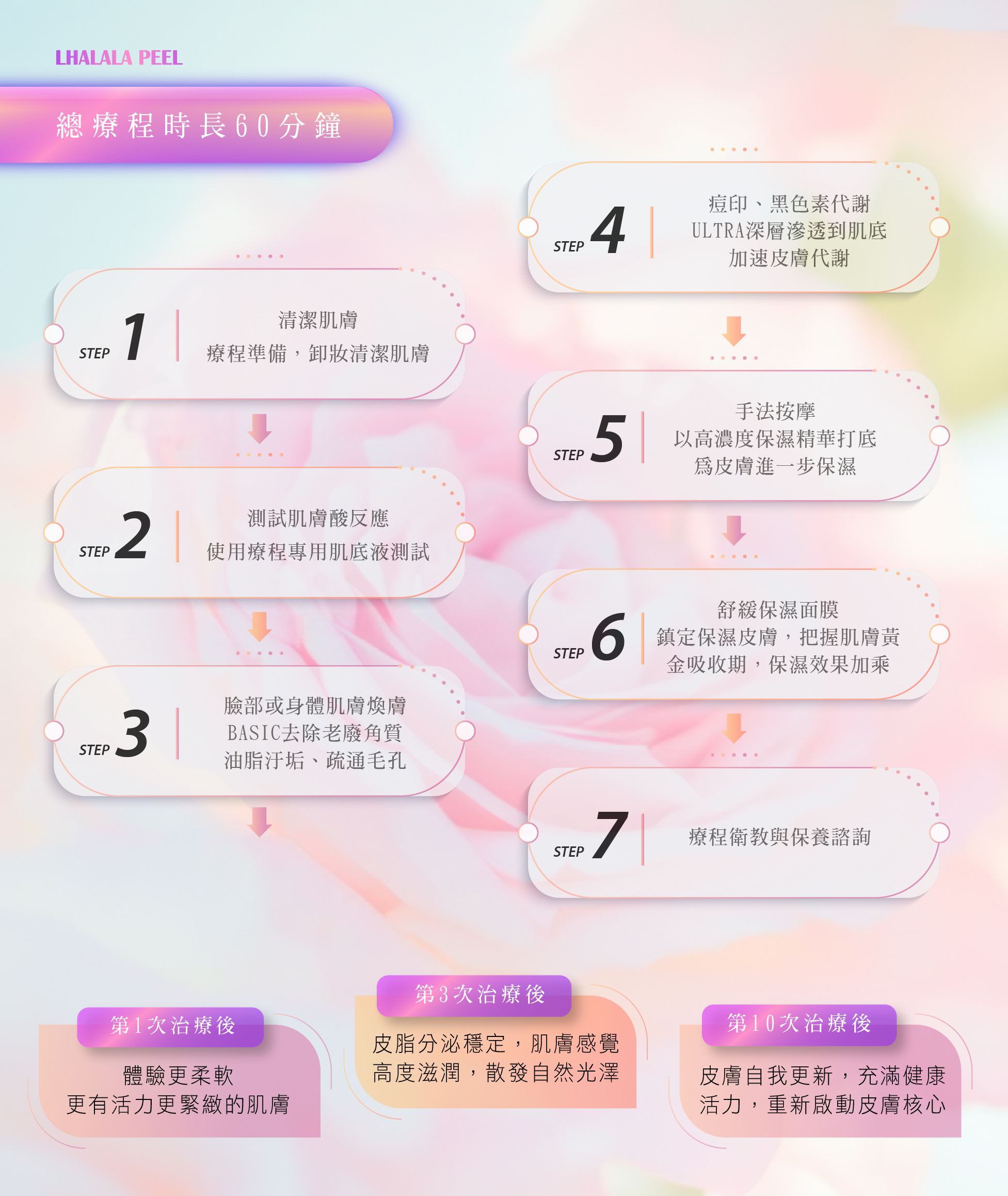 正常情況兩週進行一次煥膚療程,亦可作常態性保養有助於改善皮膚屏障並使角蛋白循環正常化。