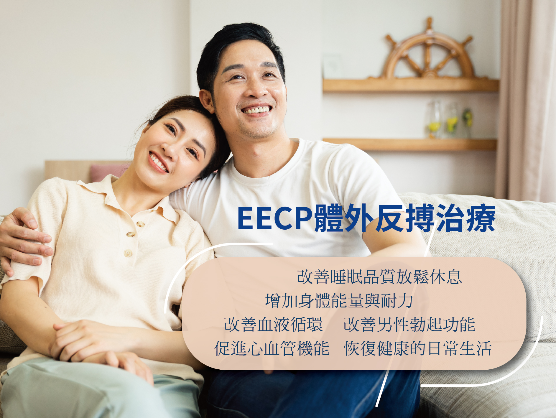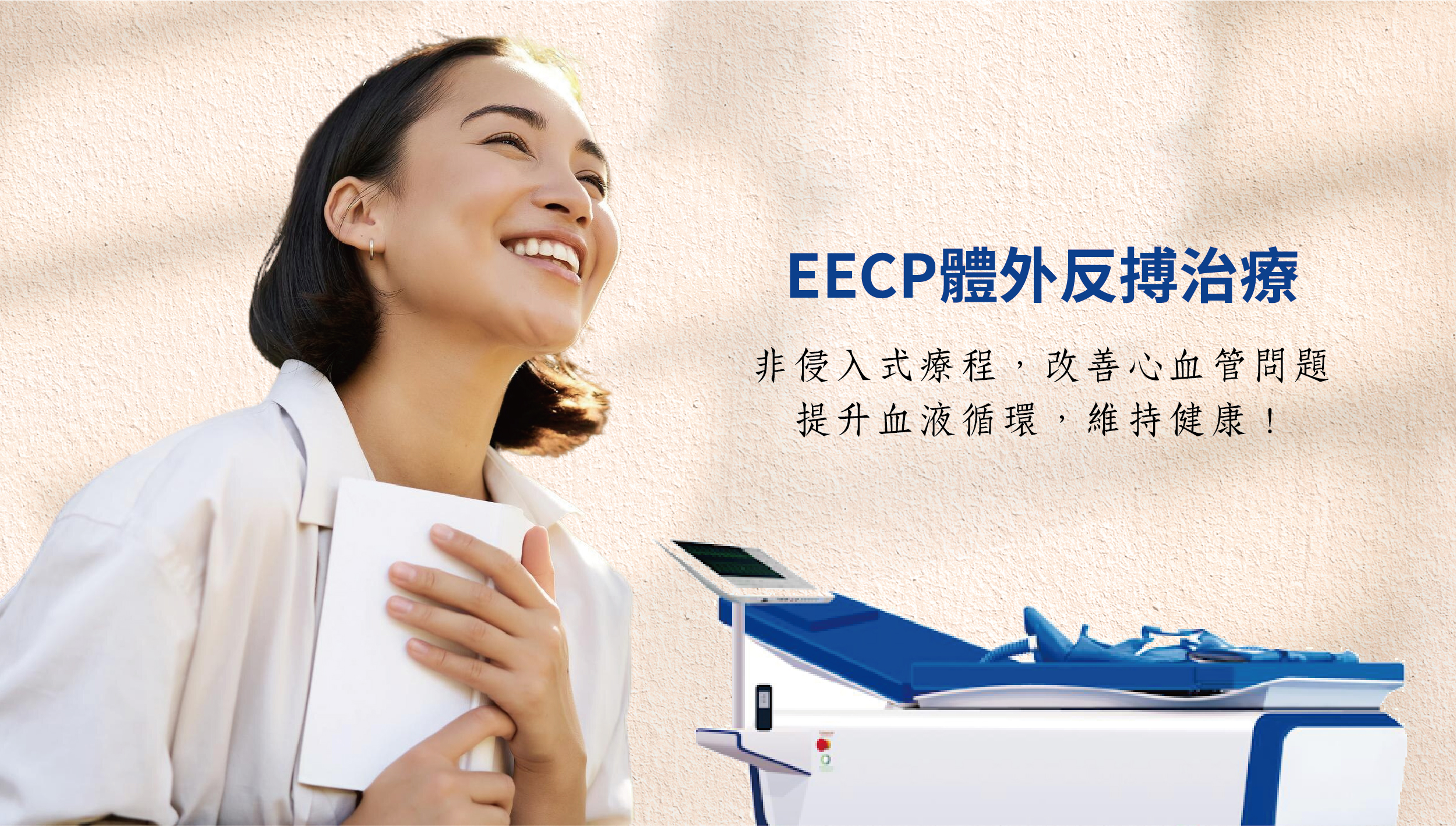 EECP體外反搏治療(Enhanced External Counter Pulsation)是經美國FDA及台灣衛服部核准的非侵入性療法,利用收縮阻力的原理來刺激血管的分泌,來達到放鬆血管、軟化血管、促進體內血流循環與減少心臟負擔,不用手術、不用麻醉、無恢復期,一次只需要一小時,治療的感覺就像是替全身血管做SPA按摩,配合心臟的舒張與收縮,藉由外力加壓與放鬆,提高心肌血液及氧氣量,幫助血管更健康,暢通全身血液與氧氣輸送,改善整體血管系統。