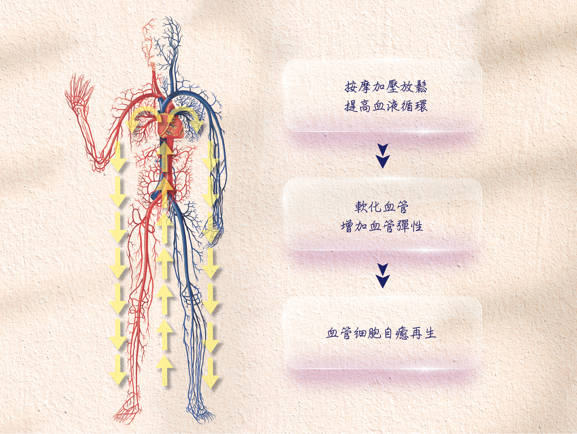 隨著年齡增長,微血管漸漸老化變窄、血液循環變差,導致器官功能減弱,碰到心臟跳動迫不得已加快的情況下,心臟需要足夠的供氧才能正常運作,所以如果動脈阻塞等問題限制含氧血液回流心臟時,可能會導致胸痛、呼吸急促或疲勞等症狀。EECP體外反搏療程可以幫助心臟被動式運動,擴張冠狀動脈血管、增加含氧血流、刺激生長因子的釋放,促進血管側枝循環形成,進而減少心臟負擔。經醫學臨床研究顯示,降低周邊血管阻力約39%、增加心臟功能輸出量達74%、腦血管血流量增加9%(相關研究刊登於美國權威科研雜誌),並受到台灣各心臟科院所認可療程。