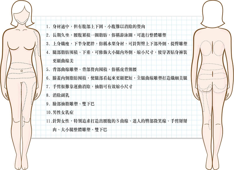 目前廣泛運用在雕塑身型的抽脂技術如: