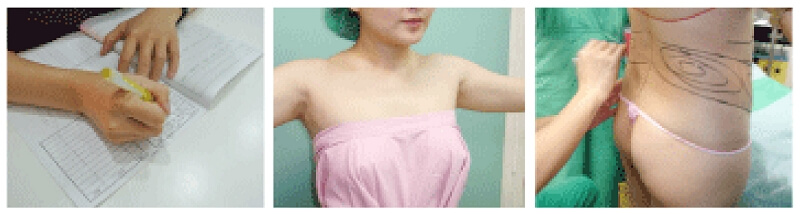 術前個人健康檢測評估 → 個人體型體態規劃與評估 → 進行術前麻醉(由20年以上經驗的麻醉師進行麻醉)→ 進行3D環狀抽脂手術(吸抽比例1:1)傷口僅僅0.3cm → 定期複診定時換藥(術後補血調理點滴)1週內