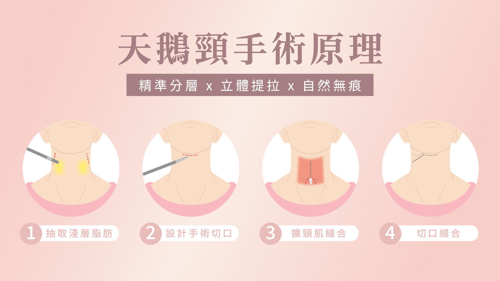 「天鵝頸手術」是一項精細的內視鏡手術,需要經驗豐富的醫師精準判斷肌肉與組織層次。我們致力於讓每一位患者在術後都能大幅提升年輕感,擁有夢想中的優雅曲線。