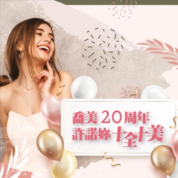 喬美20周年,許諾妳十全十美喬美20周年,許諾妳十全十美,周年慶方案,開跑囉!更多活動內容請洽官方line帳號,即時專人諮詢、預約。可多多利用線上諮詢系統 -