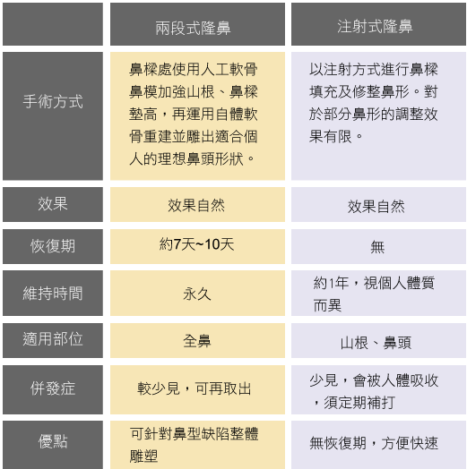 位居臉部正中央的鼻樑的高挺與否,攸關臉部黃金比例!因此,擁有挺直美鼻成為型男靚女的關鍵,隆鼻成為大改造的首選。尤其是,韓流當道,韓星美鼻也成為學生族群爭相模仿的對象。盧醫師表示,鼻子改造手術需視臉型比例、鼻子條件做評估,並可針對在意的鼻形缺陷、困擾,由專業整形外科醫師量身打造適合的專屬鼻形。若使用兩段式隆鼻,它的隱藏式切口,從外觀看不到傷口,且做出的鼻形自然,恢復期短,是暑假期間替自己大大加分的首選。兩段式隆鼻是藉由鼻柱下方或鼻內小切口,將鼻軟組織與下方的鼻硬骨和軟骨分離,然後再運用耳朵自體軟骨做3D架構重建並雕出適合個人的理想鼻頭形狀,使鼻型夠高、挺、翹,矯正鼻頭大或朝天鼻、短鼻等問題;而鼻樑處則可使用人工軟骨鼻模加強山根、鼻樑墊高,完全依據鼻形缺陷,量身打造宛如天生的美鼻。