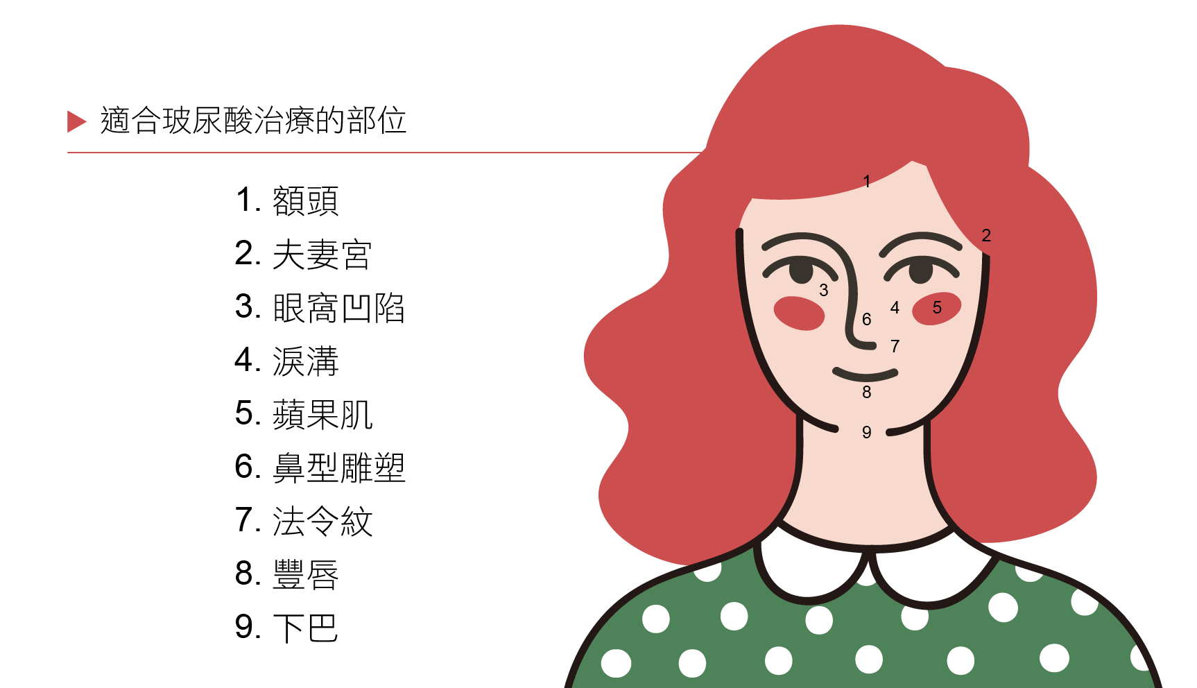 玻尿酸(Hyaluronic Acid,簡稱HA),是人體內原有的重要保濕成分,在人體肌膚中扮演重要的角色,隨著年齡增長而逐漸流失,出現鬆弛、皺紋與缺乏彈性的現象。玻尿酸注射療程,能填補紋路、凹陷,更可以達到輪廓雕塑的效果。