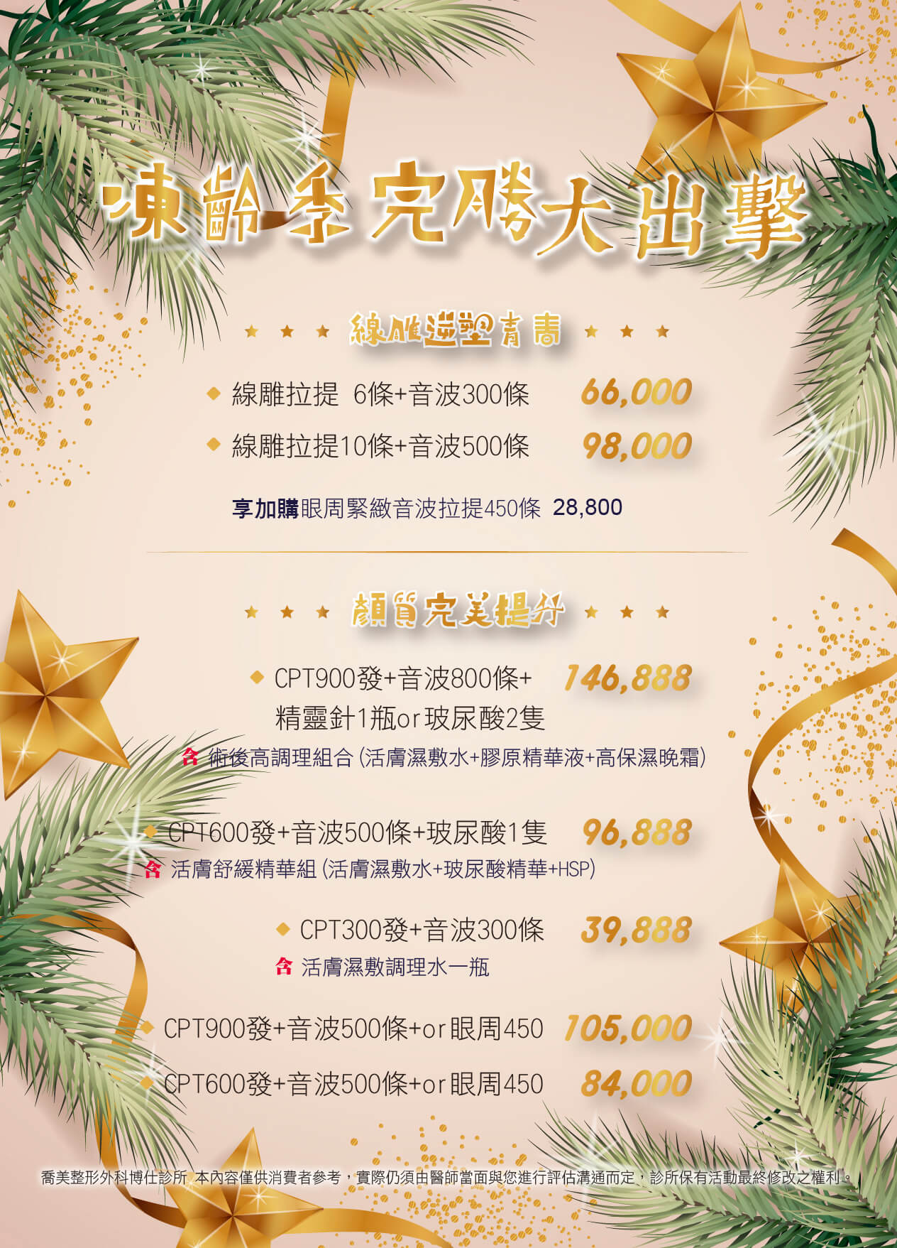 此方案已截止!!若欲了解最新消息,歡迎來電02-8964-5368,或利用 LINE@線上專人諮詢服務 如果您現在有整形美容需求了,歡迎您到喬美博仕接受專業評估。 週一至週六AM10:00-PM19:00,手術諮詢請先來電預約。雷射、微整形歡迎多多利用線上LINE專人立即幫您安排預約。 諮詢專線:02-8964-5368 ,可多多利用 線上諮詢表單 來提出問題